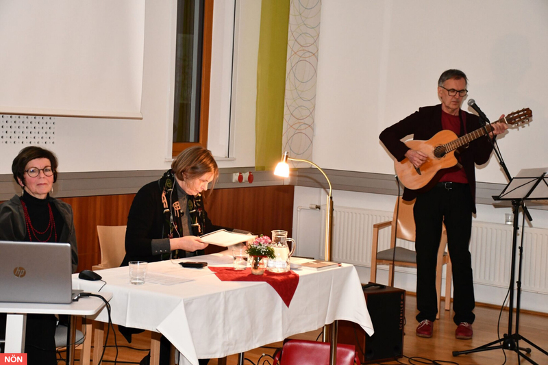 „Nicht die Bilder illustrieren meine Texte, sondern die Texte reagieren auf die Bilder“, betonte Ottilie Großmayer am Mittwoch der Vorwoche bei der Vernissage zu ihrer Ausstellung „trotzdem hoffen“ im Bildungszentrum St. Benedikt. Die Ausstellungseröffnung wurde zu einem „Dreiklang“ aus Bild, Wort und Musik. Letztere steuerte Josef Prieler gekonnt mit Gitarre und Gesang bei, während Barbara Kampas aus Büchern der in Gmunden geborenen Künstlerin las. Ottilie Großmayer setzt sich in ihrer Arbeit nämlich auch bewusst mit Literatur auseinander und bearbeitet die Thematik der eigenen Identität aus unterschiedlichen Perspektiven, sowohl aus künstlerischen wie auch persönlichen Blickwinkeln.