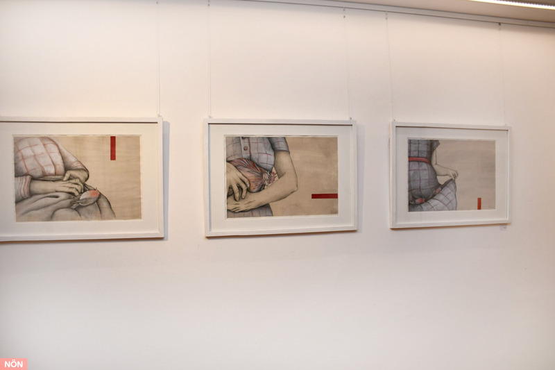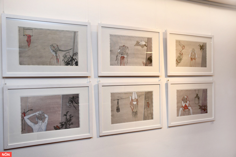 „Die fein gezeichneten oder in Acryl gemalten Bilder spielen mit Spannung, Neugierde, aber auch mit Witz und Ironie. Dadurch entstehen Räume, die der Betrachter nach eigenen Erfahrungen interpretieren kann“, betonte die Künstlerin, für die der „rote Strich“ in ihren Zeichnungen Druck aufbaut und Bewegung stoppt. Gezeigt werden in Seitenstetten auch Exponate aus Bildserien wie „Haarspaltereien“, „Randbemerkungen“ oder „Vor Ort-Palermo Markt“.