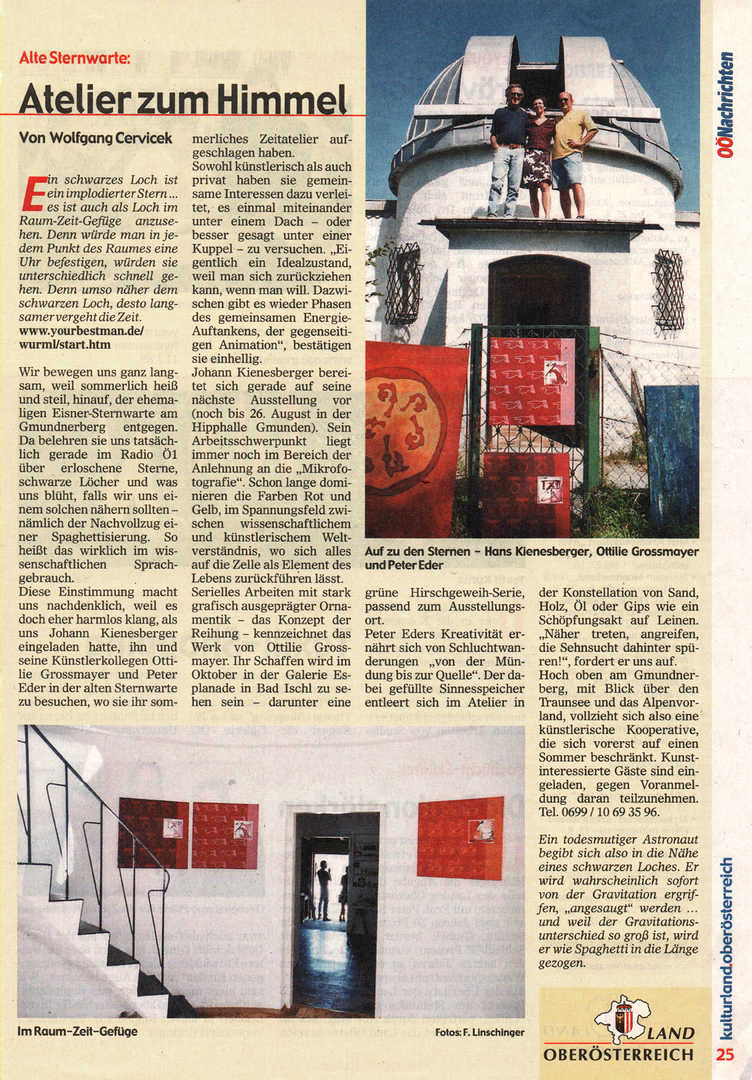 Die 3 KünstlerInnen haben die Sternwarte in eine offenen Werkstätte mit vielen Ausstellungsstücken verwandelt. Schon jetzt besuchen viele neugierige Ausflügler und Wanderer die alten Gemäuer. Edmund Brandner